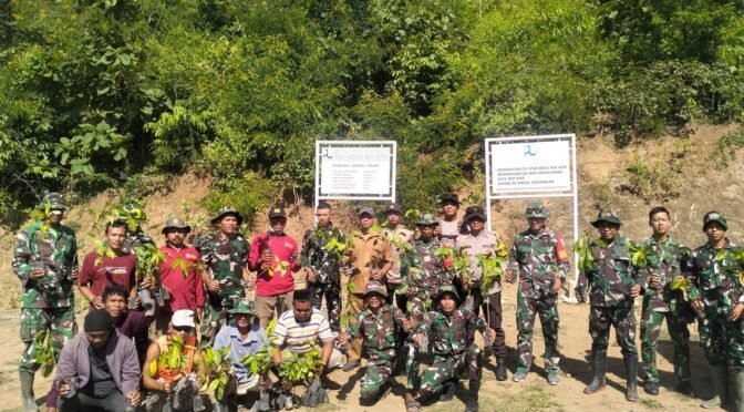 Sumbawa Barat, NTB – Sebagai upaya pelestarian lingkungan bagi masyarakat, Komandan Satuan Tugas (Dansatgas) TNI Manunggal Membangun Desa (TMMD) ke-123 Kodim 1628/ Sumbawa Barat melaksanakan penanaman berbagai macam tanaman pohon di lokasi TMMD, Bertempat di Bendungan Dusun Jorok Tiram Desa Batu Putih, Kecamatan Taliwang, Kabupaten Sumbawa Barat, Rabu (05/03/2025).