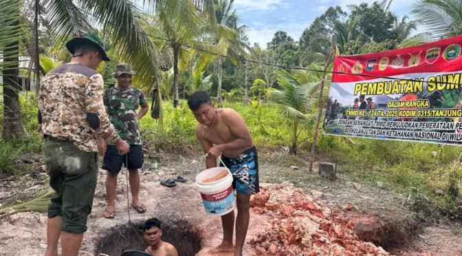 Dalam rangka mendukung program TMMD Ke-124, Kodim 0315/Tanjungpinang saat ini tengah melaksanakan pembuatan sumur konvensional di Desa Panggak Laut, Kecamatan Daik, Kabupaten Lingga. Proses pengerjaan sumur ini memerlukan perjuangan panjang dari Satgas TMMD, hingga akhirnya berhasil menemukan sumber mata air yang diharapkan dapat memenuhi kebutuhan masyarakat setempat.