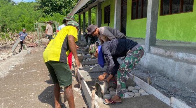 NTT-KEFAMENANU, Kamis (13/03/2025) Semangat gotong royong antara Satgas TMMD Ke-123 Kodim 1618/TTU dan masyarakat Desa Lanaus terus berkobar. Mereka kini tengah fokus menyelesaikan pengerjaan halaman depan SDN Lanaus, sebagai bagian dari percepatan pembangunan empat ruang kelas baru.