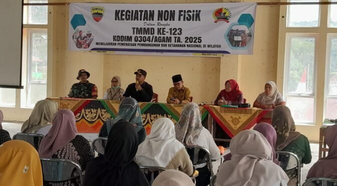 Agam – Penyuluhan pos yandu dan sosialisasi terus dilaksanakan dalam kegiatan TNI Manunggal Membangun Desa (TMMD) Ke-123 Kodim 0304/Agam, bertempat di kantor Wali Nagari Balingka, Kecamatan Ampek Koto, Kabupaten Agam, Kamis (6/3//2025).