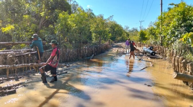 Barito Selatan – Satgas TMMD Kodim 1012/Buntok terus bergerak di tengah medan yang penuh tantangan di Desa Talio, Kecamatan Karau Kuala, Kabupaten Barito Selatan. Meski air menggenang hingga hampir setinggi lutut di lokasi pengerjaan jalan, hal itu tidak menyurutkan semangat para anggota Satgas untuk menyelesaikan sasaran fisik TMMD ke-124.