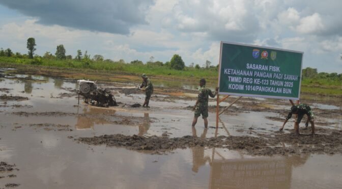 Pangkalan Bun – Program TNI Manunggal Membangun Desa (TMMD) ke-123 tidak hanya berfokus pada pembangunan infrastruktur, tetapi juga turut memperkuat ketahanan pangan di wilayah sasaran. Kodim 1014/Pbn, sebagai salah satu pelaksana TMMD, menjalankan program ketahanan pangan yang merupakan salah satu program unggulan Kepala Staf Angkatan Darat (KSAD).