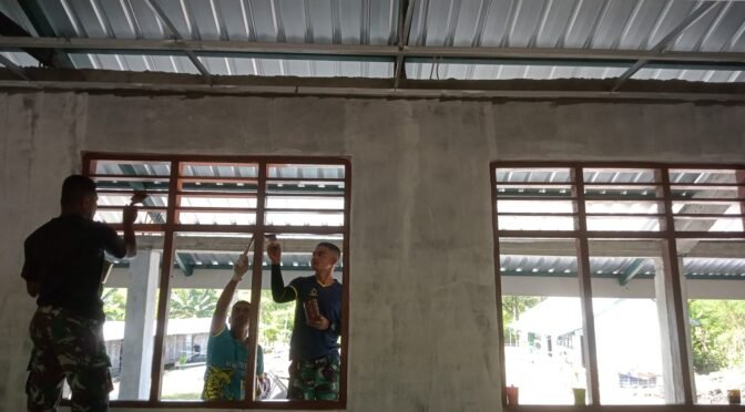 Kopda Viktor A. Kaju menyampaikan bahwa pekerjaan ini memerlukan ketelitian tinggi agar hasilnya maksimal. “Kami ingin memastikan bahwa setiap detail dikerjakan dengan baik agar anak-anak bisa belajar di ruang kelas yang nyaman dan aman,” ujarnya.