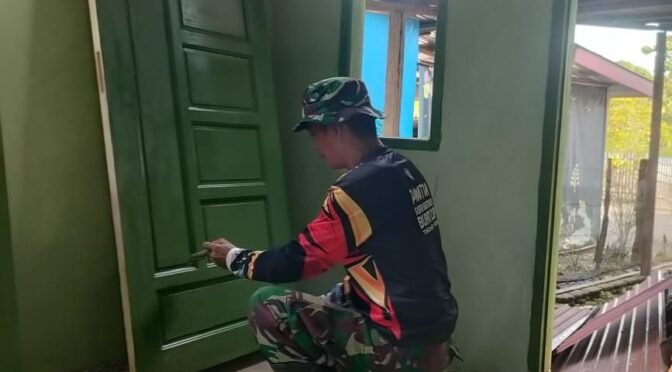 Morowali – Pembangunan Rumah Tidak Layak Huni (RTLH) di Dusun Kajukoo, Desa Bente, Kecamatan Bungku Tengah, yang menjadi bagian dari program TNI Manunggal Membangun Desa (TMMD) ke-123 Kodim 1311/Morowali, semakin mendekati tahap akhir. Pada Rabu (12/03/2025), terlihat Satgas TMMD sedang melakukan pengecatan daun pintu sebelum proses pemasangan.