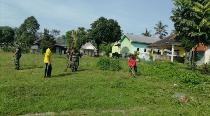 Lumajang, Babinsa Pagowan Koramil 0821-17/Pasrujambe, Serda Khamim Tohari, bersama masyarakat setempat, menggelar kerja bakti pembersihan dan perawatan rumput lapangan di Dusun Pakurejo, Desa Pagowan, Kecamatan Pasrujambe, Kabupaten Lumajang, Jawa Timur, pada Rabu (26/2/2025).