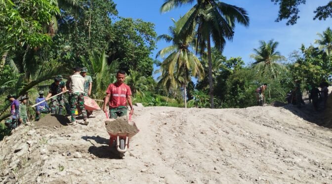 Dengan penuh dedikasi, para prajurit bahu-membahu mengerjakan pelebaran jalan dan pembangunan jembatan, yang menjadi bagian utama dari program TMMD kali ini. Meskipun cuaca panas dan kondisi fisik diuji karena berpuasa, mereka tetap menunjukkan loyalitas dan semangat pantang menyerah.