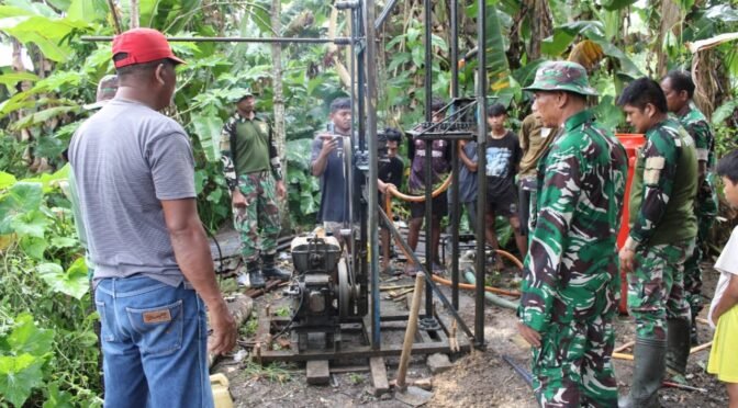 Muna Barat–Satuan tugas (Satgas) TNI Manunggal Membangun Desa (TMMD) ke-123 Kodim 1416/Muna membuat sumur bor untuk memenuhi kebutuhan air bersih bagi masyarakat Desa Wandoke Kec. Tikep Kab. Muna Barat, (7/3/2025).