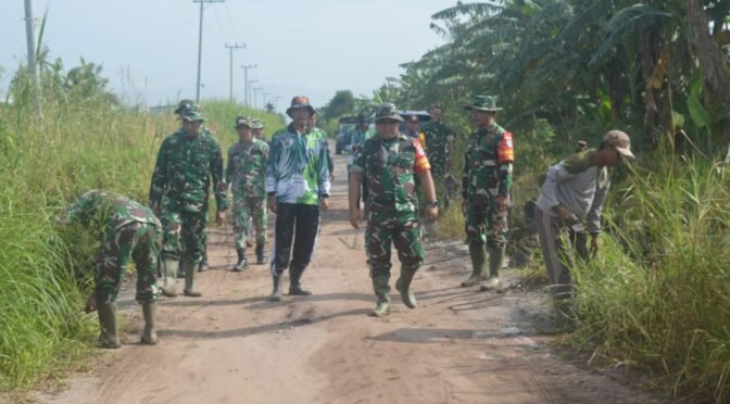 Sukamara – Program kegiatan TNI Manunggal Membangun Desa (TMMD) Reguler ke-123 Ta 2025 Kodim 1014/Pbn di hari ke enam, Dansatgas TMMD Letkol Inf Makin S.Sos., M.I.P. meninjau kegiatan Karaya Bakti pemberishan jalan di lokasi TMMD Reg ke – 123 di lokasi sasaran kegiatan di Desa Nibung Kecamatan Jelai Kabupaten Sukamara, Senin (24/2/25).