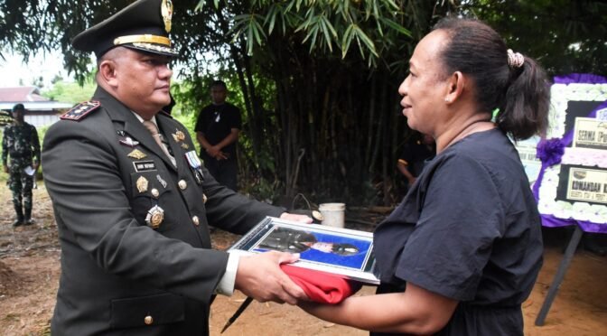 Suasana khidmat menyelimuti Jalan Garuda, Mopah Lama, Kabupaten Merauke – Provinsi Papua Selatan, saat prosesi pemakaman militer dilangsungkan untuk menghormati kepergian Almarhum Serma (Purn) Hendrik Kapressi, NRP 524054, pada Kamis sore tanggal 8 Mei 2025.