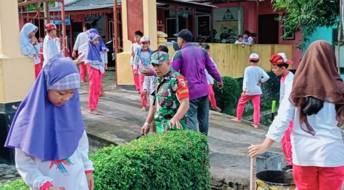 Lumajang, Dalam rangka memperingati Hari Peduli Sampah Nasional (HPSN), Babinsa Ranuyoso Koramil 0821-06/Ranuyoso Koptu Suleman, bersama siswa dan dewan guru menggelar aksi pembersihan lingkungan di sekitar SDN Ranuyoso 01, Kecamatan Ranuyoso, Kabupaten Lumajang, Jawa Timur, pada Jumat (21/2/2025).
