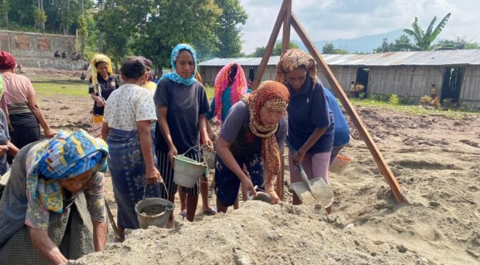 Di bawah terik matahari, warga dan prajurit TNI bahu-membahu mempercepat pembangunan sekolah. Bagi masyarakat Lanaus, TMMD bukan sekadar pembangunan fisik, tetapi juga harapan bagi masa depan anak-anak mereka agar dapat mengenyam pendidikan yang lebih layak.